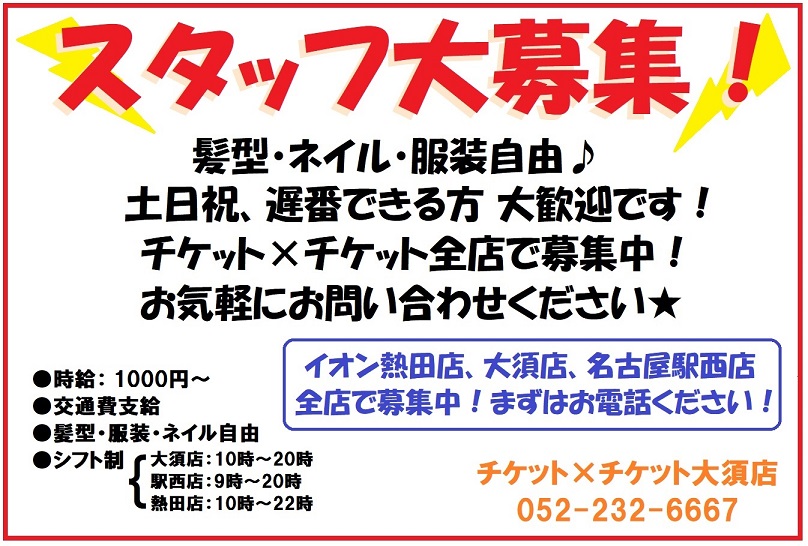 チケット×チケット大須店(@ticketohsu_kai) さんが求人募集をしています