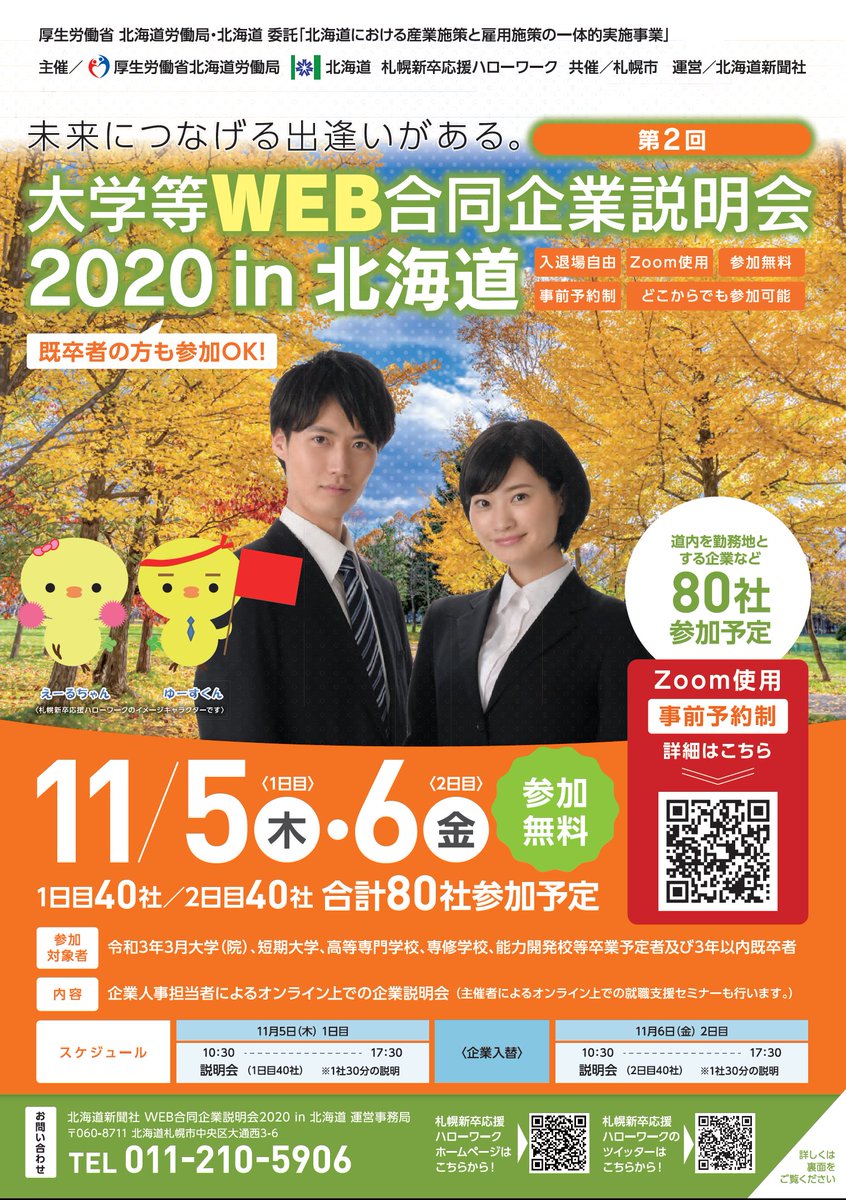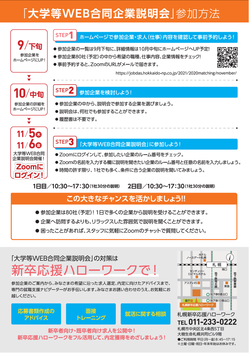 札幌新卒応援ハローワーク【公式】(21卒・22卒・既卒者を応援)(@S_shinsotu_yell) さんが求人募集をしています