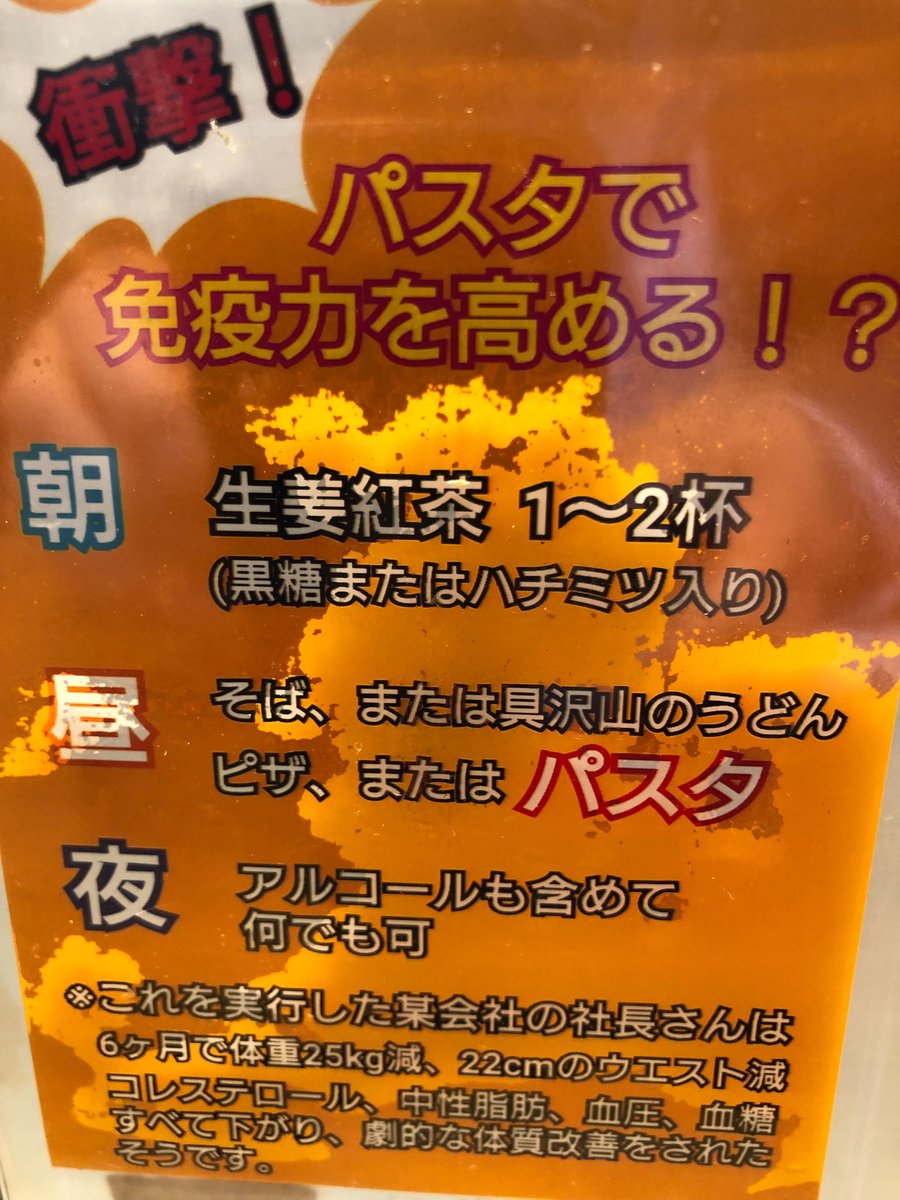 パスタ押しすぎて面白い。これ実践して20キロ痩せると30キロ台になってしまう。(笑)