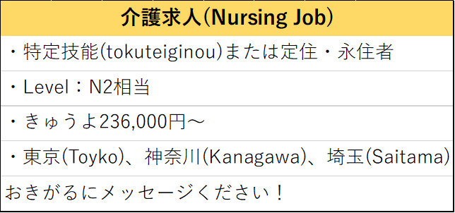 東京・神奈川・埼玉の介護施設で特定技能(tokuteiginou)を募集しています!