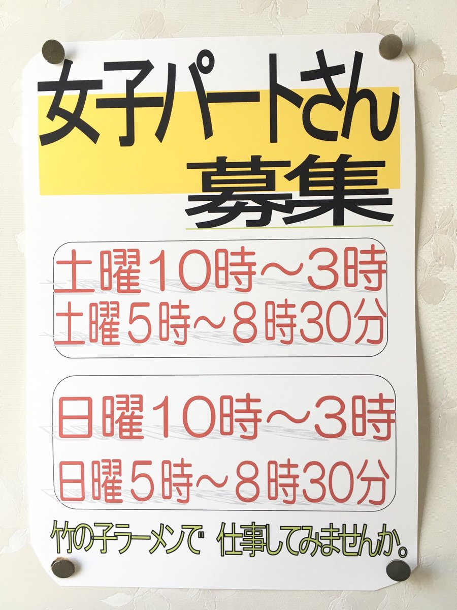 らーめん亭竹の子 /40th year/(@RamenTakenoko) さんが募集してる仕事